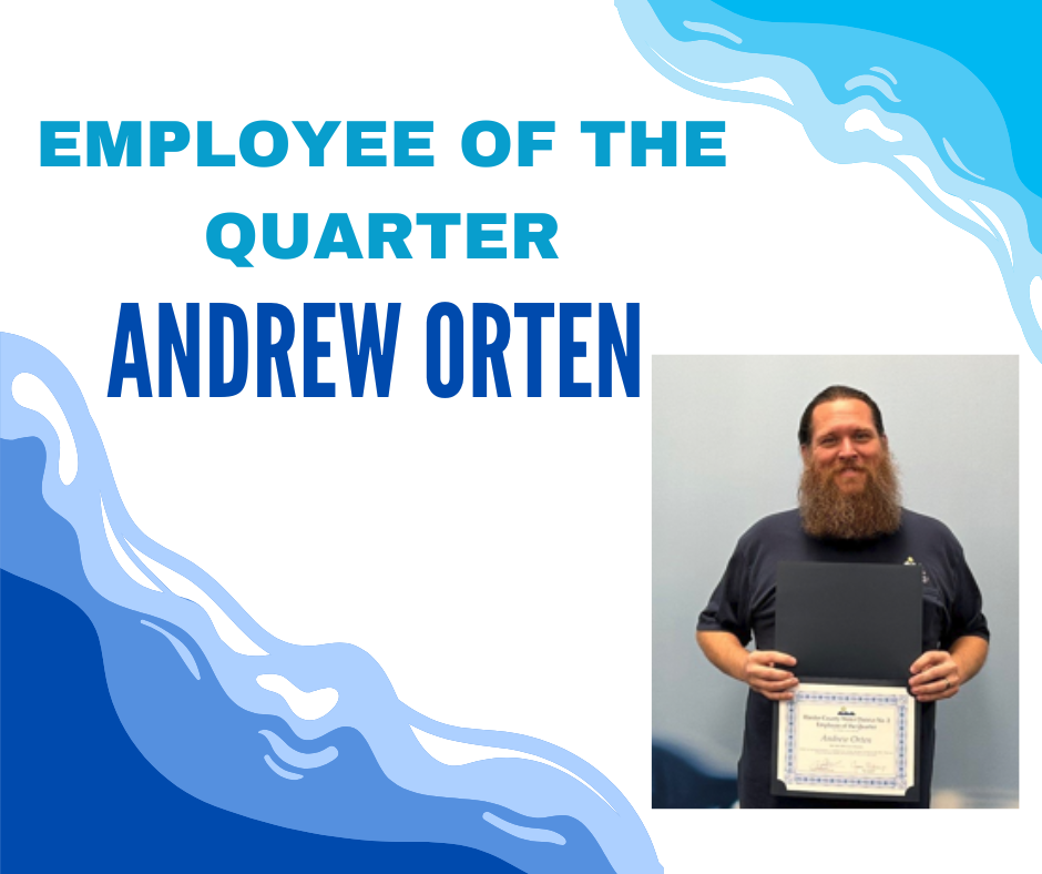 We are proud to recognize Andrew Orten as our Employee of the Quarter! With 11 years of dedicated service, Andrew has played a crucial role in advancing the capabilities of our Water District through his work as a GIS Technician.